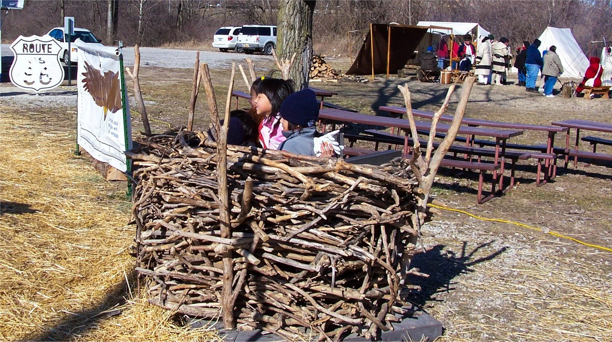 Kids in a life sized Bald Eagle’s nest